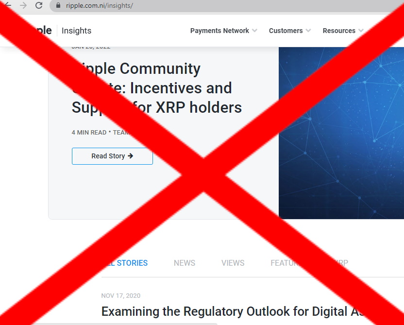 Прежде всего, несовпадение имеется по добавлению и давности материала: у мошенников все статьи якобы от Ripple, кроме материала о фальшивой помощи, опубликованы осенью 2020 года, причем с достаточно частой периодичностью. В настоящем блоге распределение статей идет, соответственно, со значительно большим временным разбросом, а также их самих значительно больше. Кроме того, на поддельном сайте не все категории статей: нет категории Разработчик. Наконец, последнее различие – в самой ссылке на сайт: у мошенников после ripple.com идет еще ni, чего в ссылке на настоящий официальный сайт нет.