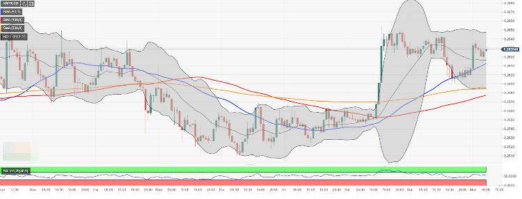 Начальное сопротивление для Ripple XRP расположено на уровне $0,2650. Далее основное на $0,27. Для дальнейшего продвижения Ripple XRP необходимо пробить данную отметку. Это позволит Ripple XRP сфокусироваться на повышении до уровня $0,2783. С другой стороны, остается риск понижения за уровень $0,26, который в настоящее время выступает в качестве основной поддержки. В случае падения следующей поддержкой для Ripple XRP станет отметка $0,2580, которая достаточно сильная, поэтому риск понизиться за нее достаточно не значителен.