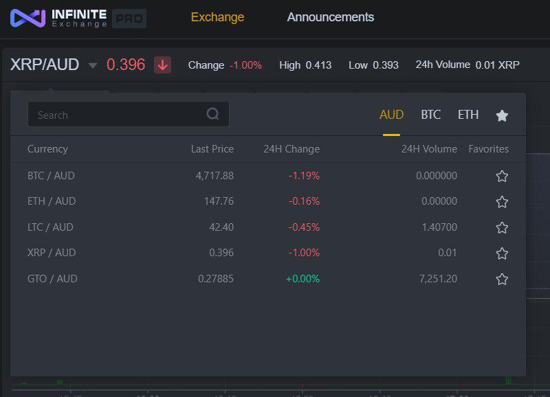 Для XRP предлагаются пары XRP / AUD, XRP / BTC и XRP / ETH